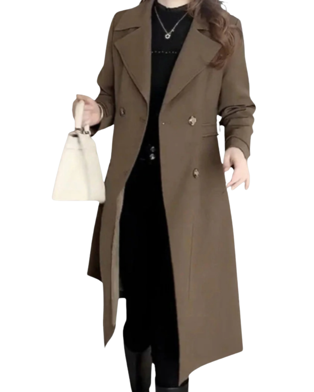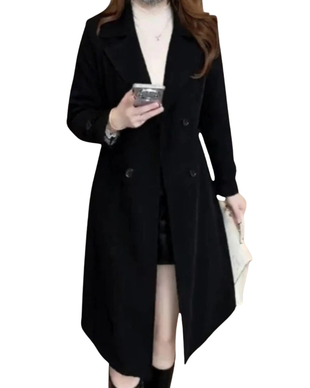 Wrap yourself in timeless sophistication with the Paige Classic Long Coat. Featuring a double-breasted front and a sleek tailored cut, this coat brings an air of effortless refinement to any outfit. Perfect for layering over casual or formal looks, it’s a versatile essential for women who value both comfort and confidence.