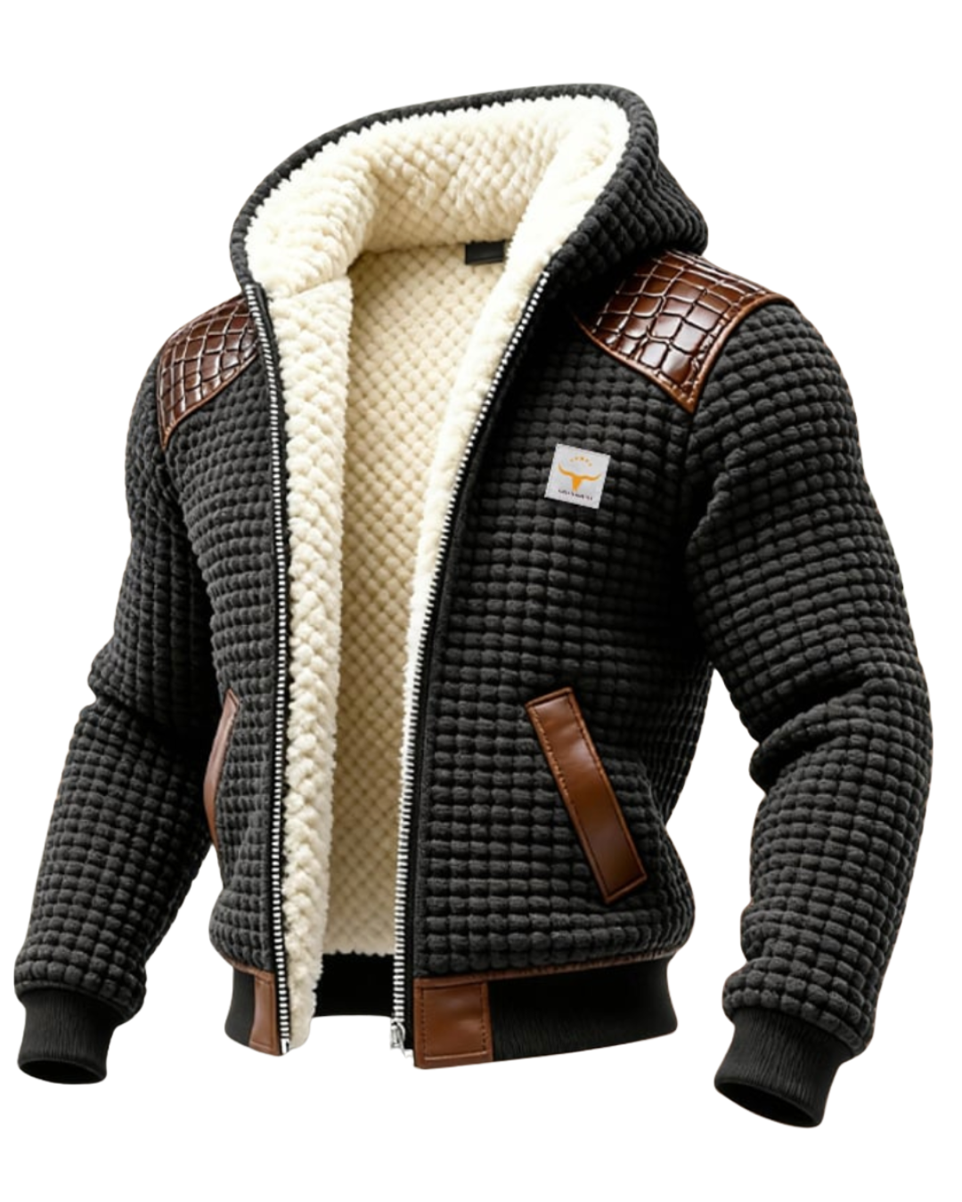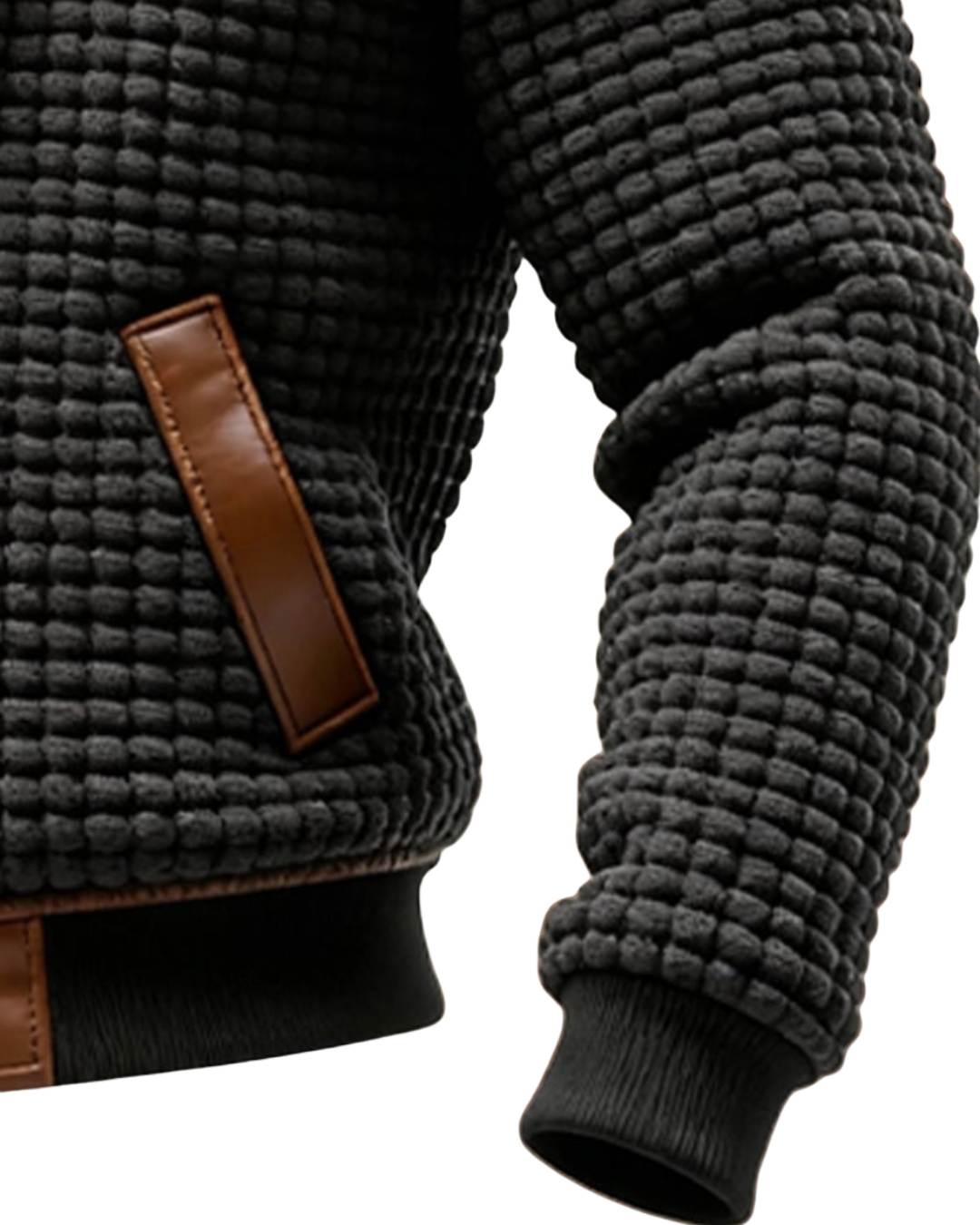 This retro cardigan features a textured patchwork leather design with a plaid pattern, offering an authentic and distinctly original look. Its warm and comfortable material makes it ideal for mid-season and cool days. The practical cut ensures ease of movement while elegantly shaping the silhouette. A perfect choice for those looking to add a strong, stylish piece to their wardrobe.