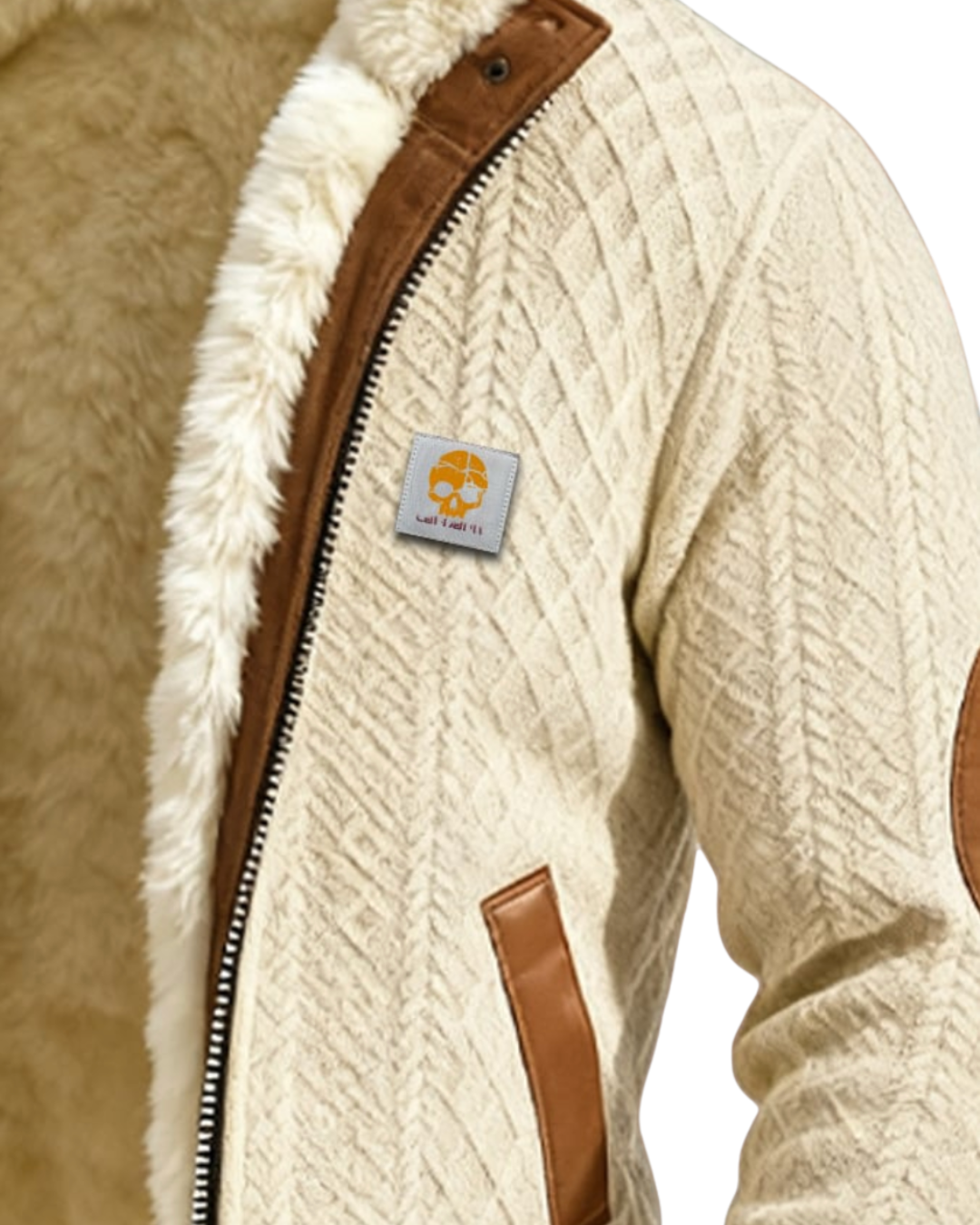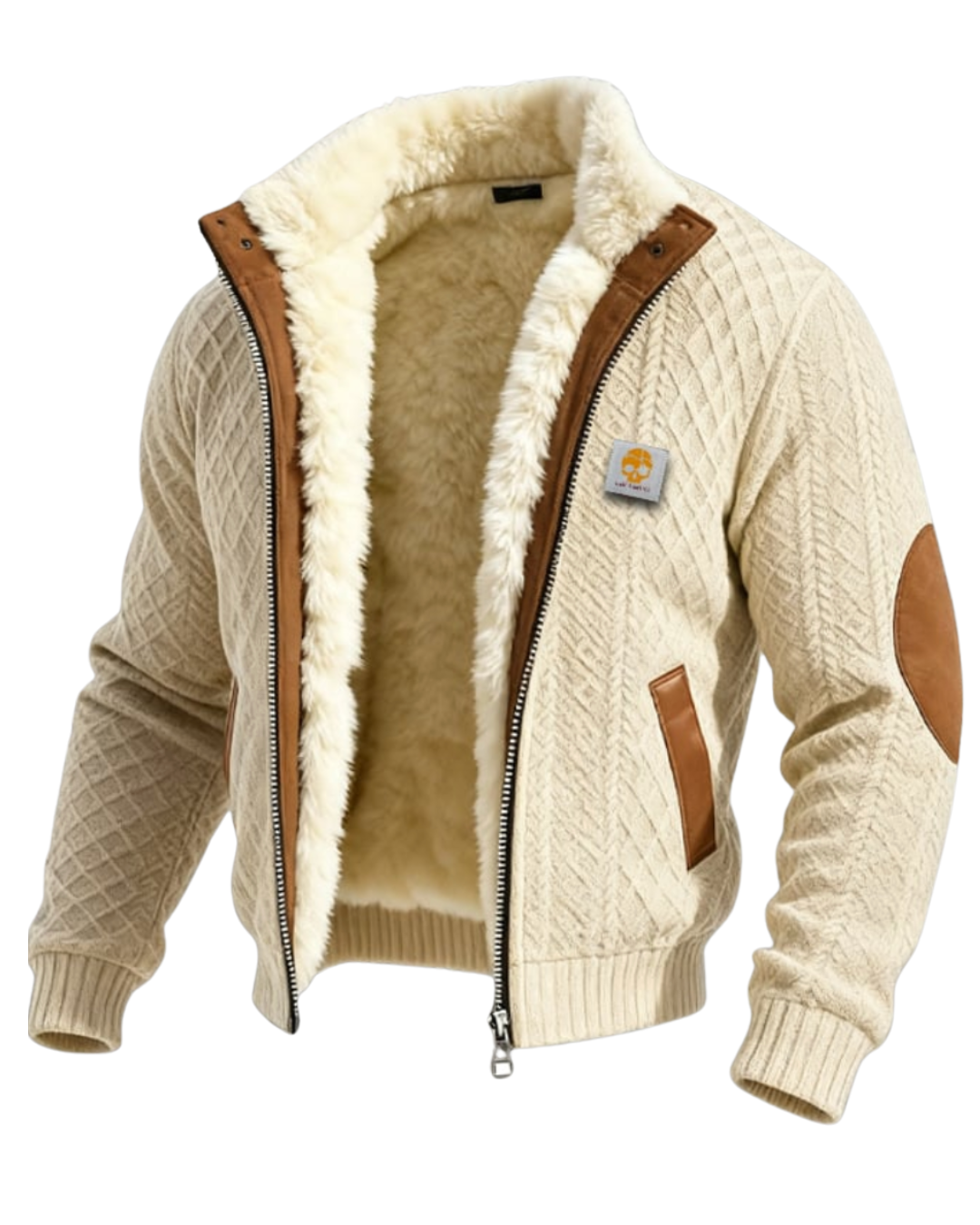 This retro jacket features a textured jacquard knit, adding an authentic and sophisticated touch to masculine style. Its warm material ensures lasting comfort on cool days while remaining pleasant to wear. Multiple pockets provide practical functionality without compromising the aesthetic. A unique piece that effortlessly combines warmth, style, and practicality.
