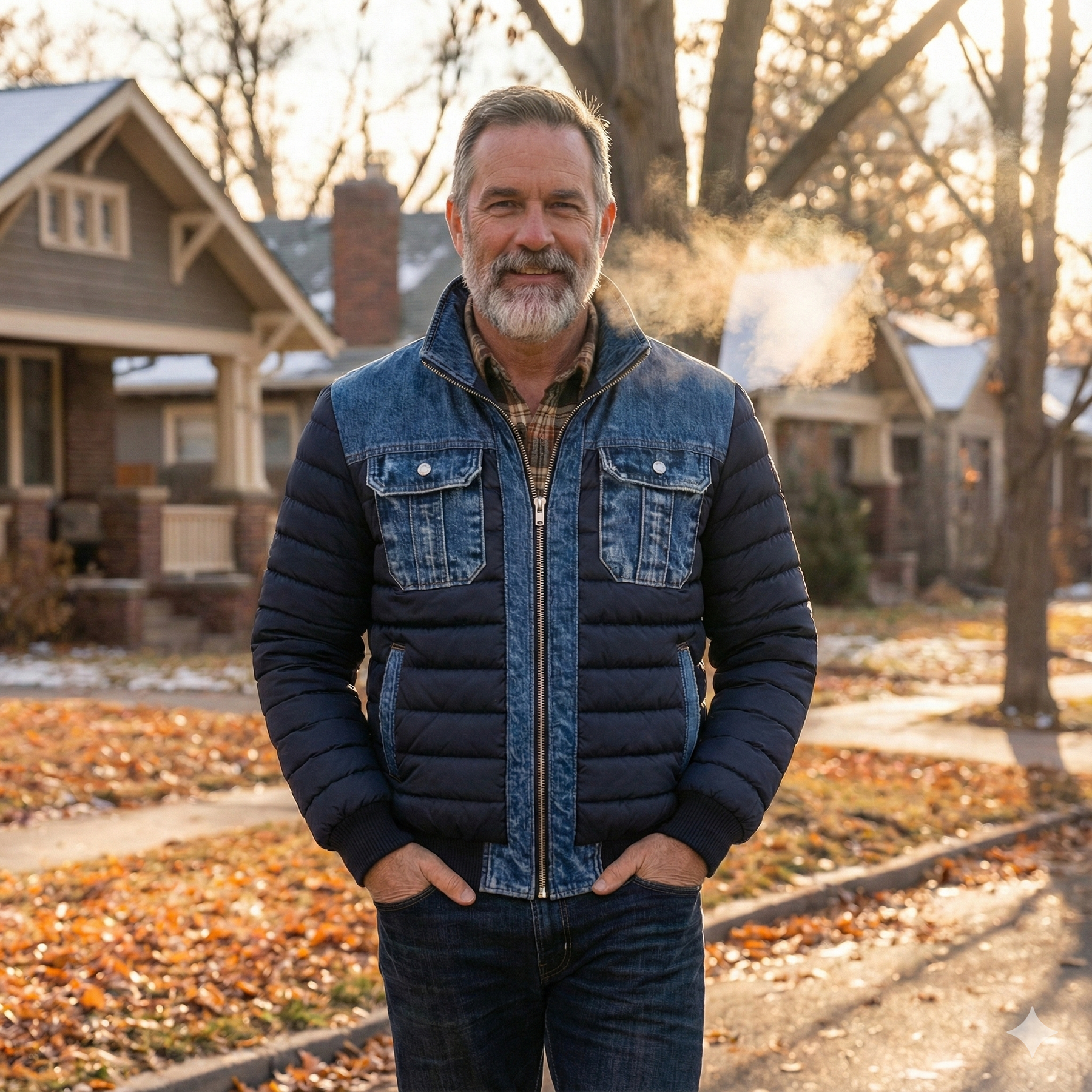 The denim accents add an authentic vintage touch, while the lightweight padding provides warmth and everyday comfort.