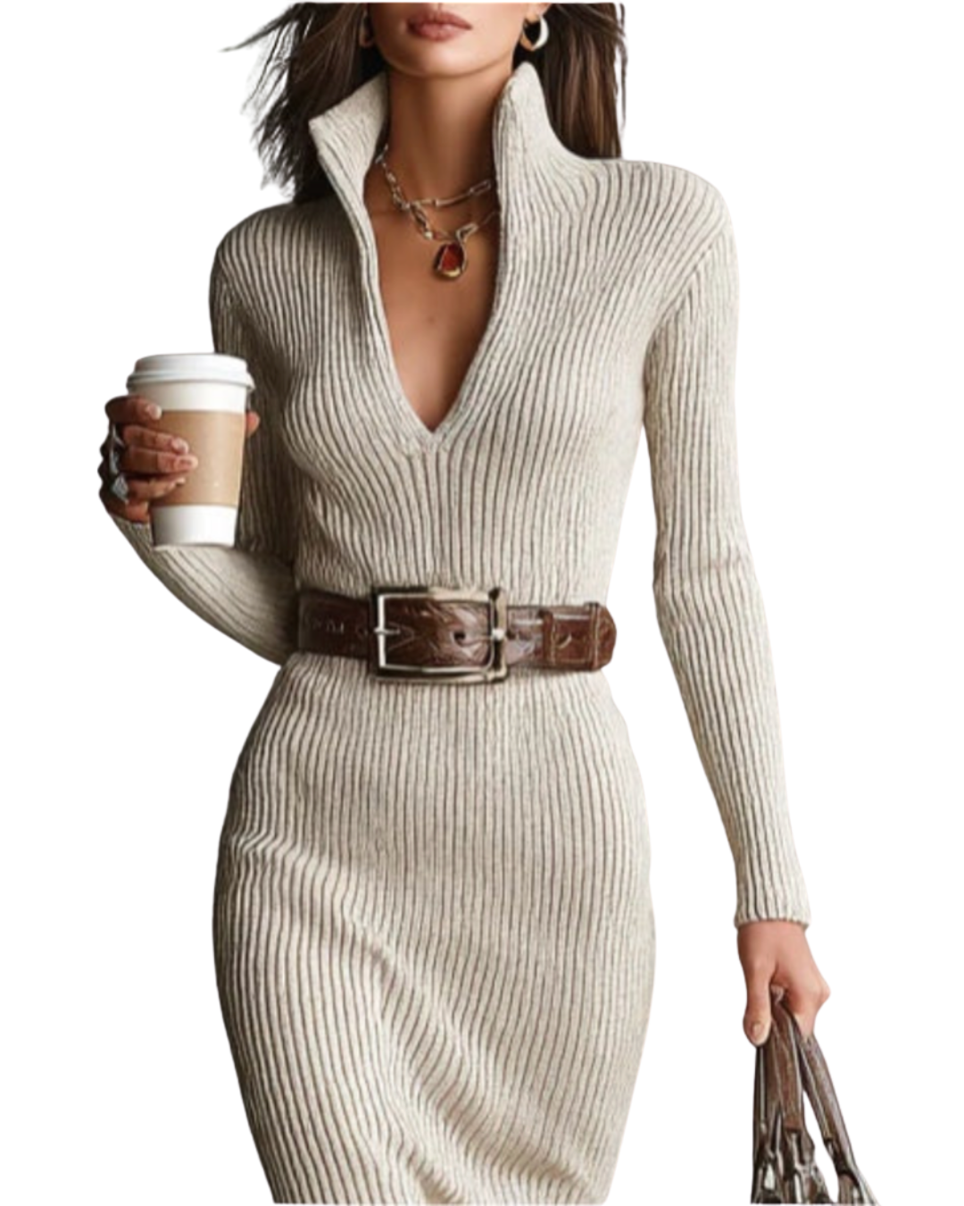 The Gabriela dress was designed for women who appreciate classic style, comfort, and a figure-enhancing silhouette. The soft, stretchy knit fabric beautifully adapts to the body, while the mock neck with a subtle V-shaped neckline adds an elegant touch. The included belt allows you to define the waist and create a feminine, harmonious silhouette.