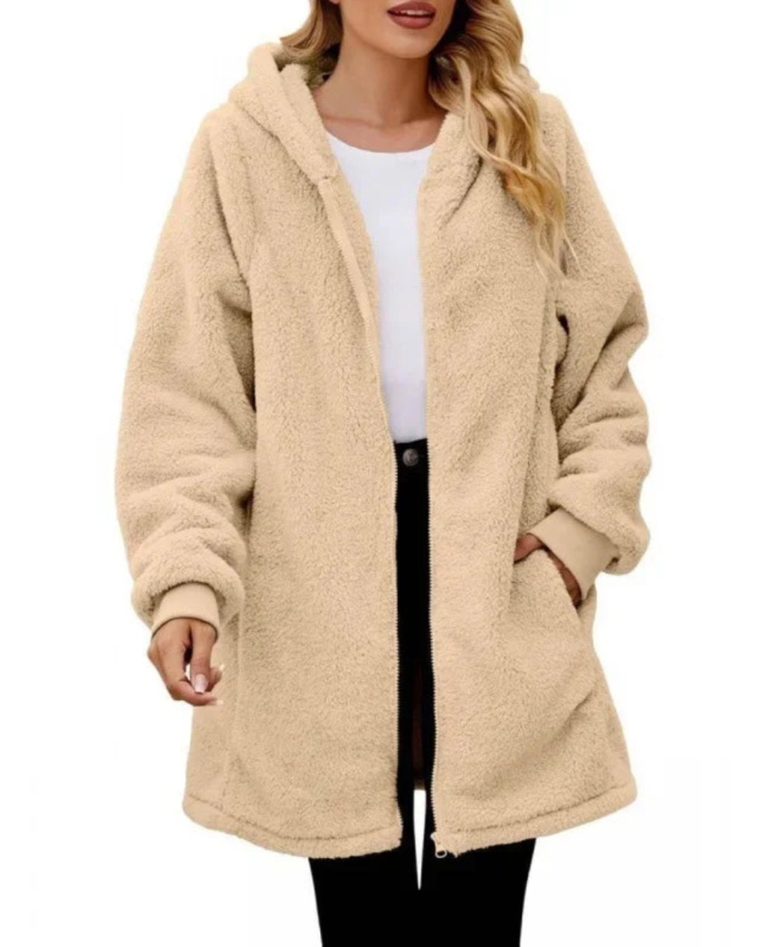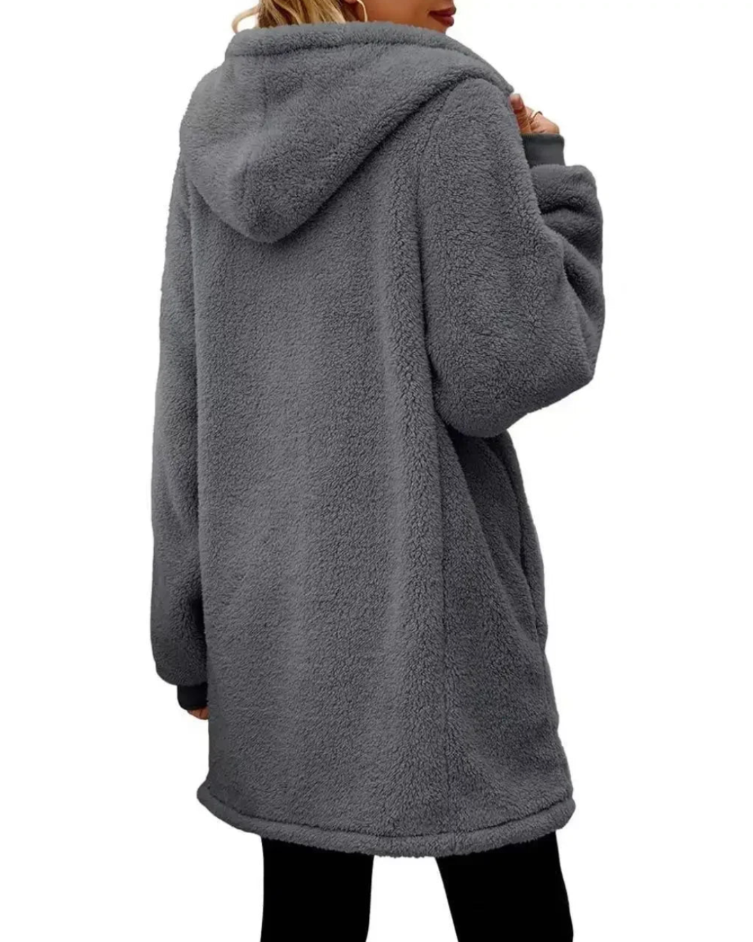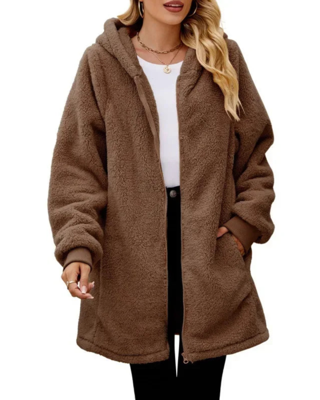 Warm, soft, and incredibly cozy to the touch – this fleece jacket with a hood is your reliable companion for cooler days. It envelops your body in soft fleece, providing comfort and freedom of movement without feeling restrictive. Perfect for walks, daily outings, or relaxing at home.